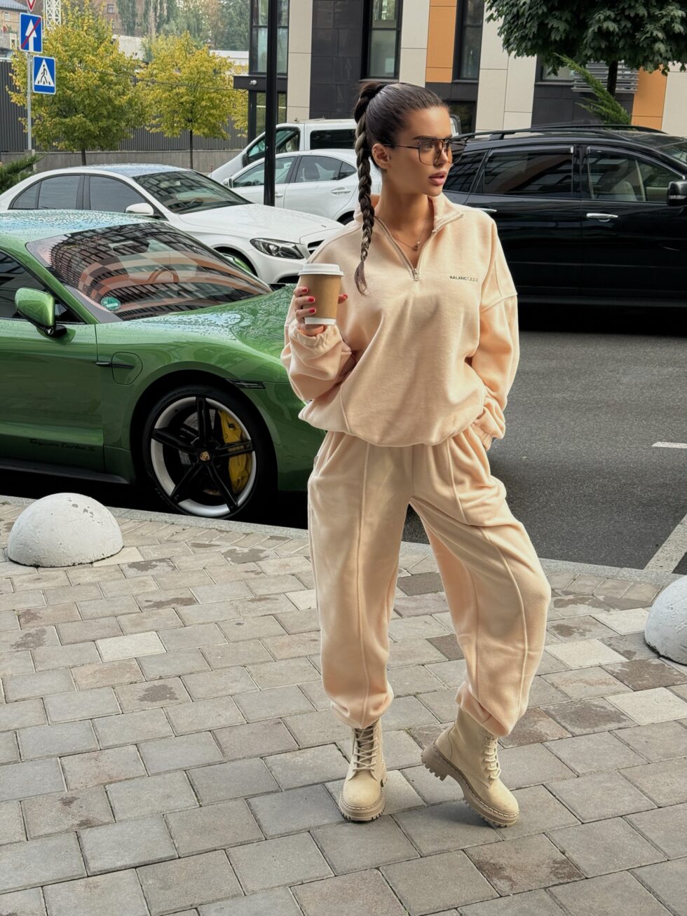 Цей універсальний флісовий костюм oversize стане незамінним у твоєму гардеробі. М’який фліс полар подарує відчуття тепла і затишку, а вільний крій дозволить почуватися комфортно в будь-якій ситуації. Регулятори на кофті дозволять створити ідеальний силует саме для тебе, а кофта стійка додасть образу мінімалістичності, штани з високою посадкою – кожна деталь продумана для вашого комфорту. Універсальний розмір ONE SIZE (XS-M) дозволить тобі виглядати стильно і відчувати себе впевнено.