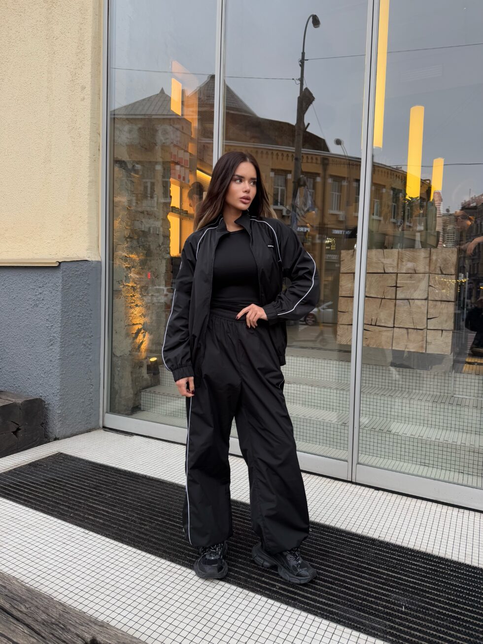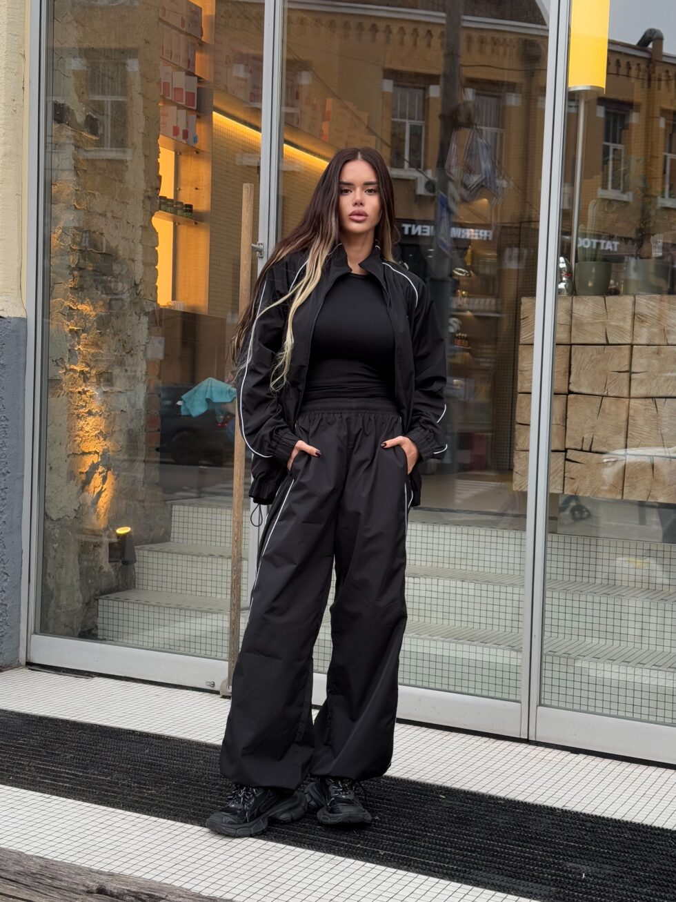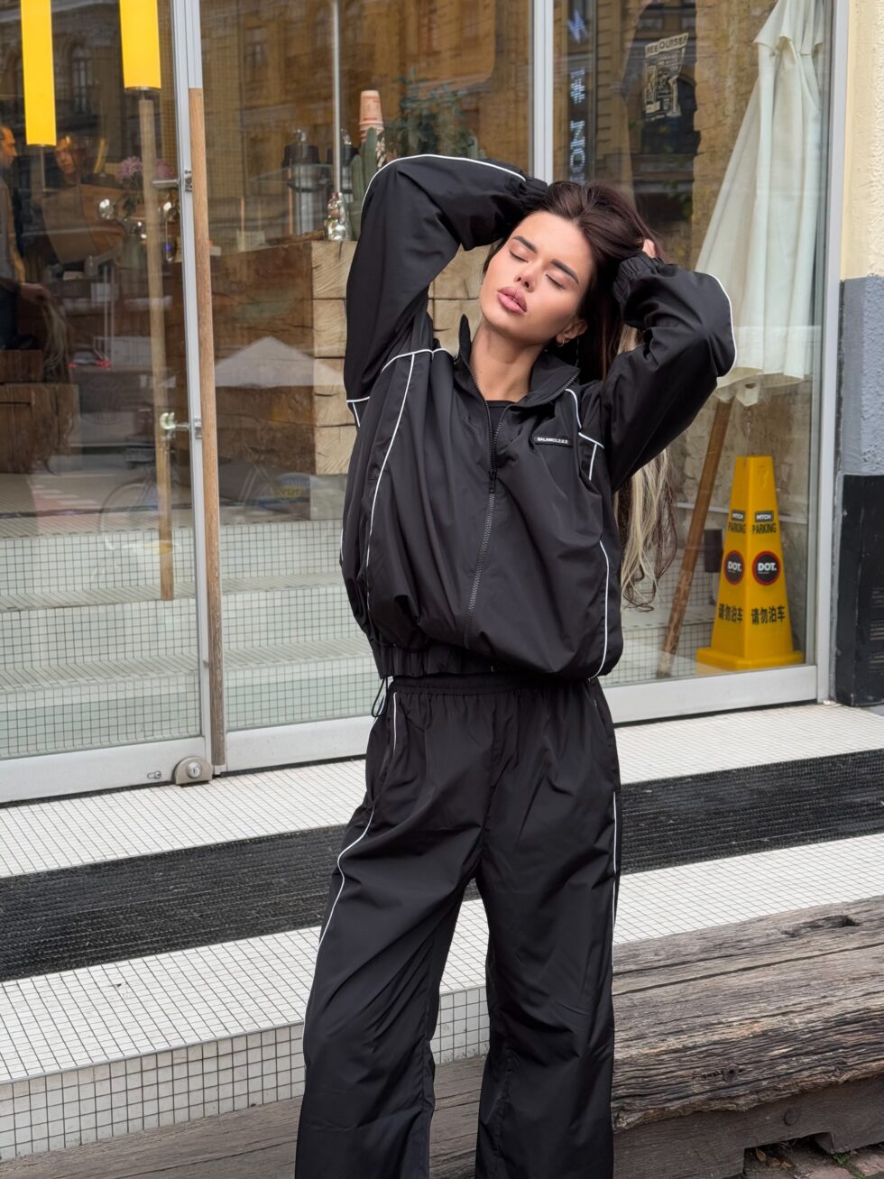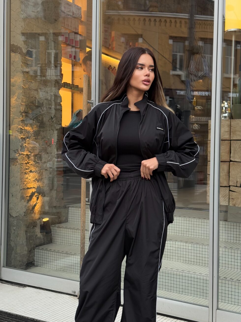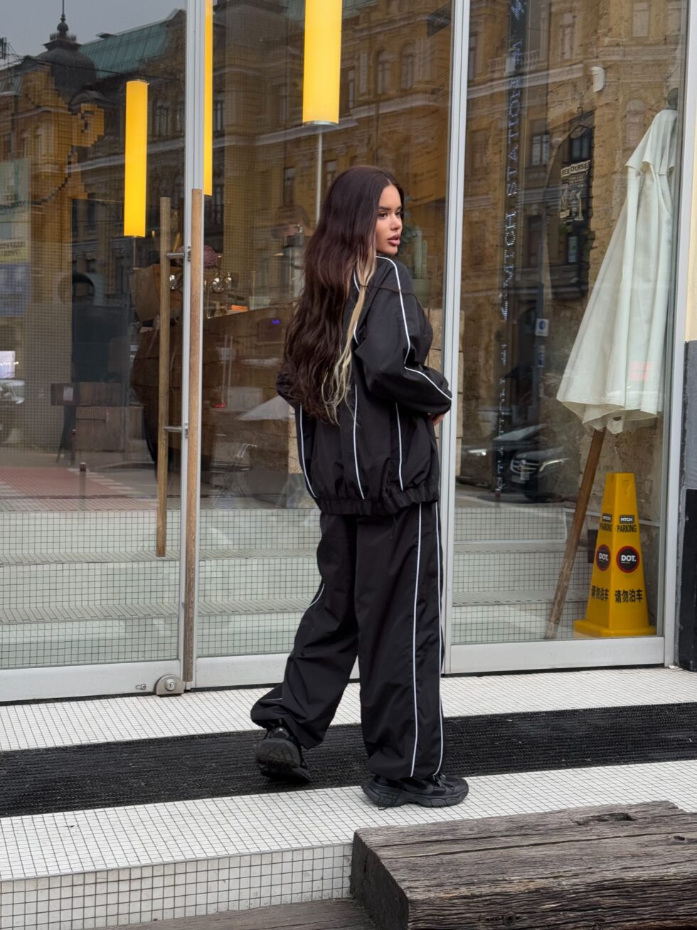 Матеріал забезпечує захист від вітру та легкий догляд, а внутрішня підкладка додає комфорту — костюм приємний до тіла і підходить для щоденного носіння. Особливий акцент — декоративний кант, який підкреслює силует і додає образу стильного, сучасного вигляду.