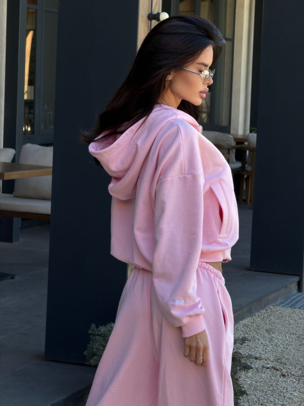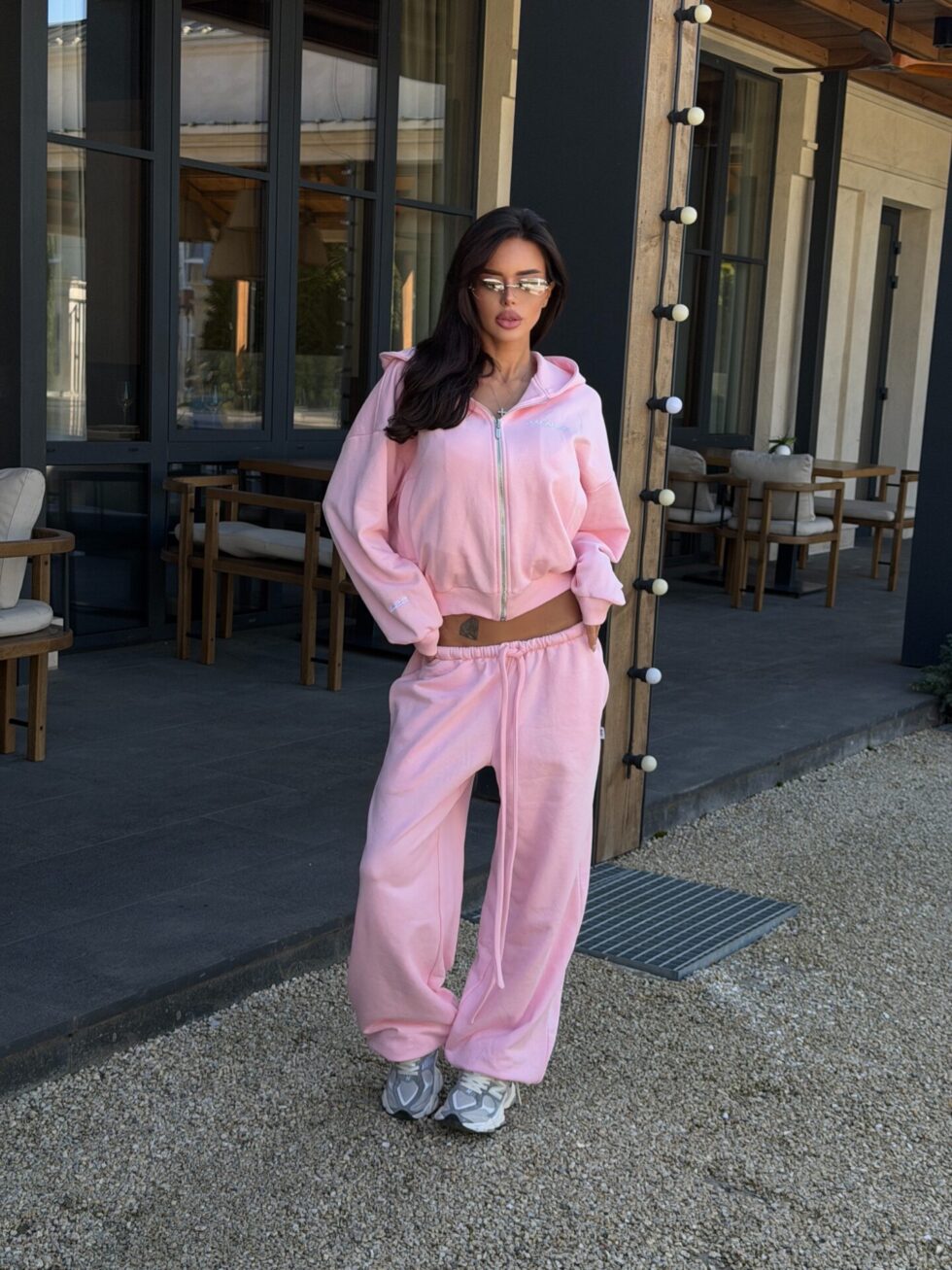 Відчуй м’якість кожного руху в нашому новому костюмі у найніжнішому рожевому відтінку. Це не просто одяг для прогулянок — це твій комфорт, помножений на стиль. Вільний крій Oversize створює розслаблений силует, а преміальна турецька тканина дарує затишок, де б ти не була