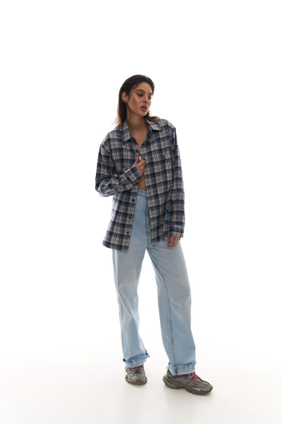 - Сорочка представлена в одному розмірі. Крій оверсайз — вона має вільну посадку та красиво сідає на різні типи фігури. Вона не облягає тіло, а створює легкий, стильний силует