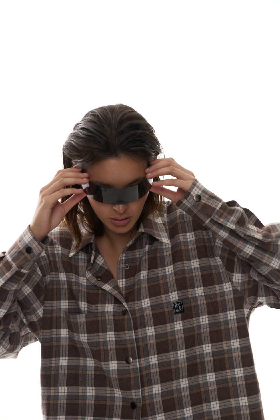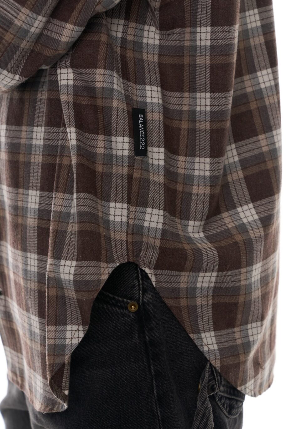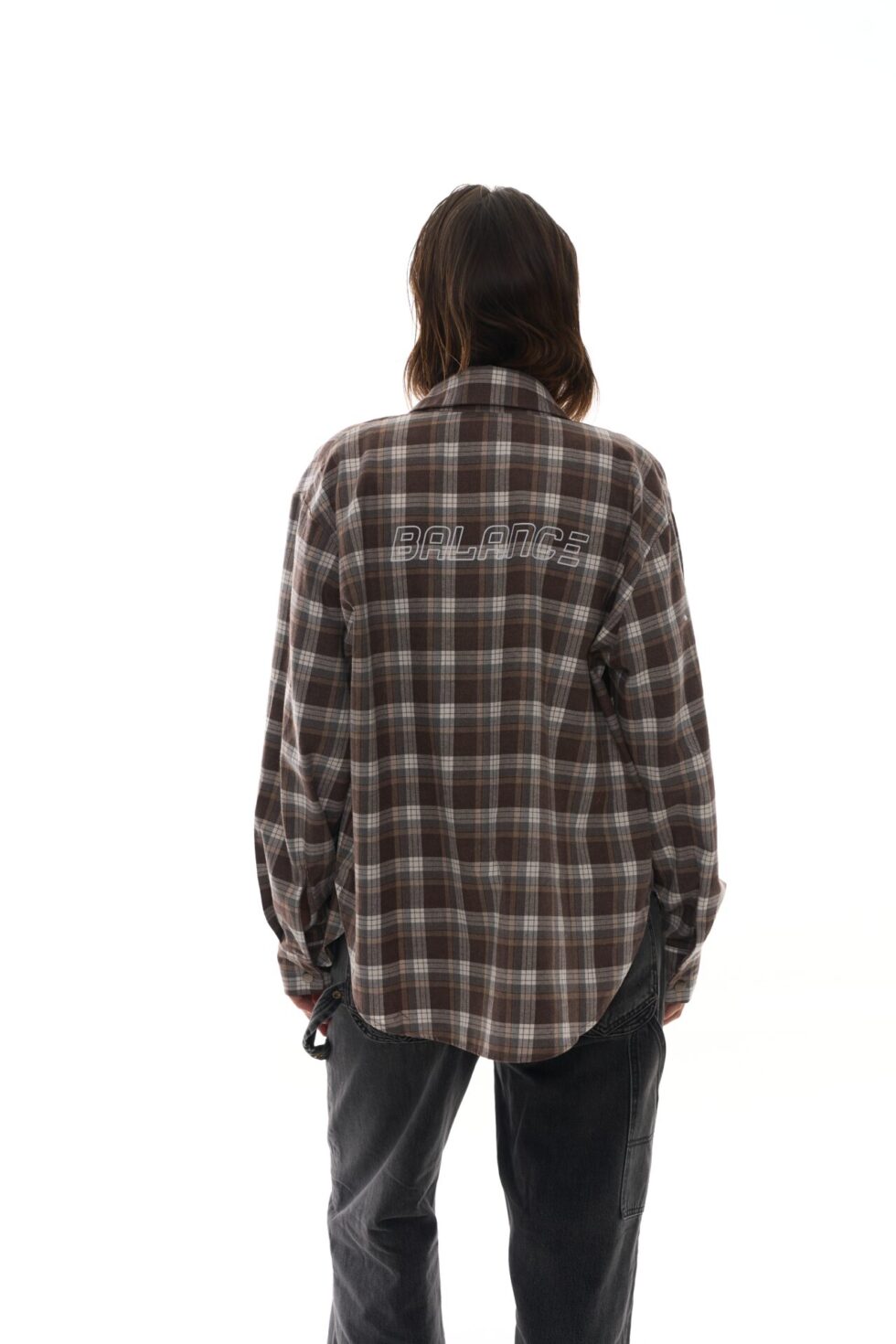 • Стильна сорочка вільного крою в клітинку з принтом BALANCE на спині.