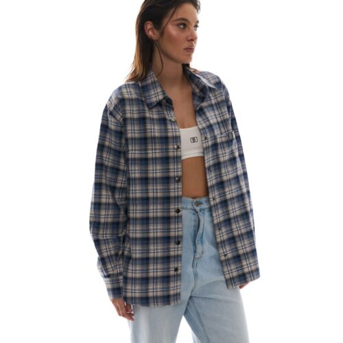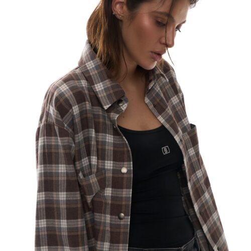 - Стильна сорочка вільного крою в клітинку з принтом BALANCE на спині.